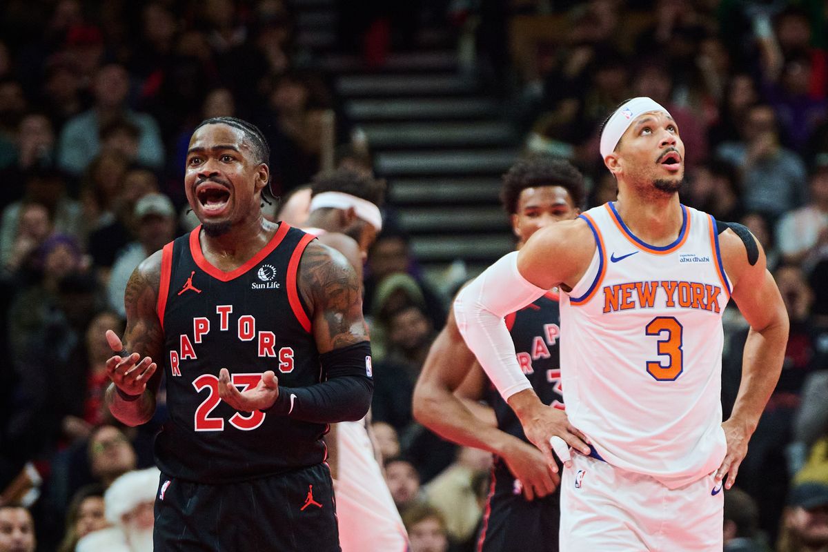 Neither of Toronto’s former Knicks was available Tuesday. Immanuel Quickley sat because of an illness while RJ Barrett missed his ninth straight game because of a sprained right knee.