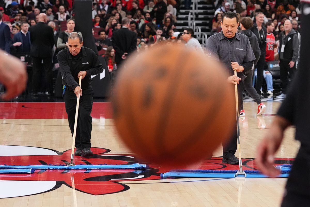 Referee Sean Wright told a pool reporter that players first informed him of the slippery court during warmups. Despite efforts by the United Center staff — including shuffling across the floor with thick towels on their feet — “we just couldn’t guarantee a safe on-court experience,” Wright said.