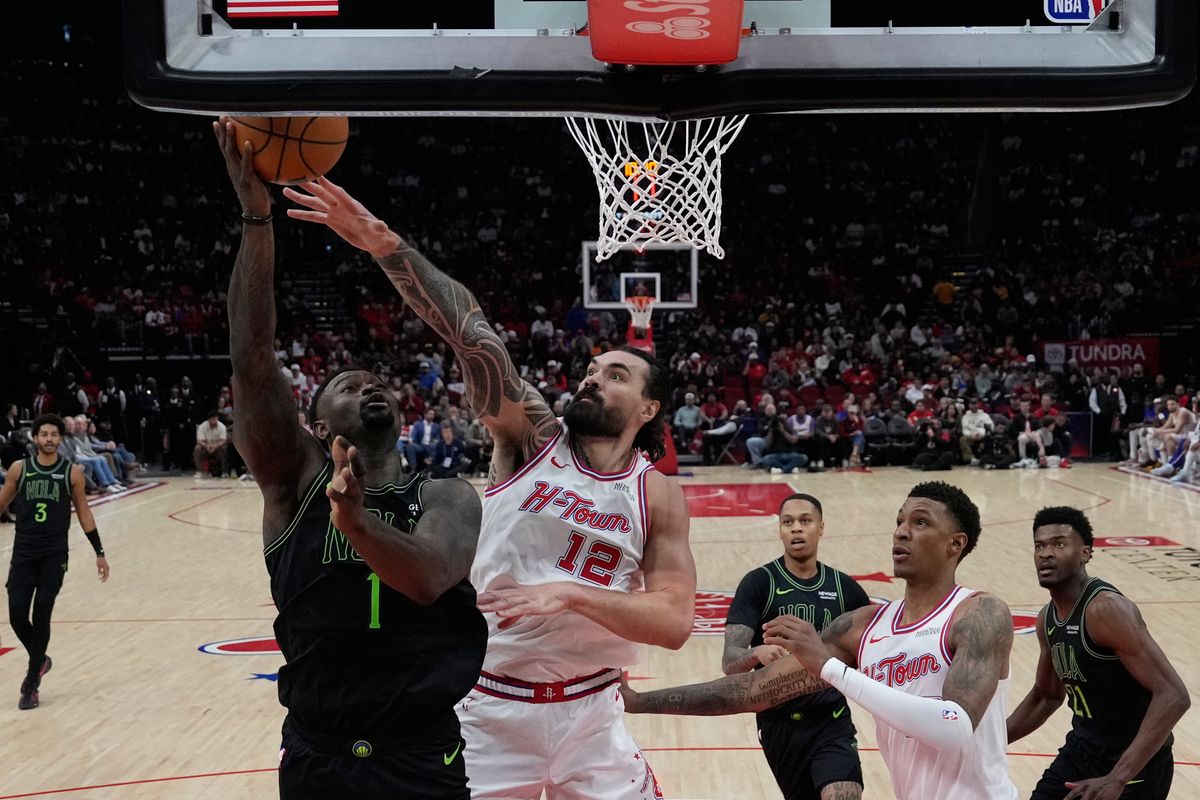 Houston’s Steven Adams had to be helped off the court in the fourth quarter with an apparent left ankle injury. Adams, who missed a few games earlier this season with a right ankle injury, had 10 rebounds and five points before leaving the game with just under 10 minutes left in the final quarter.