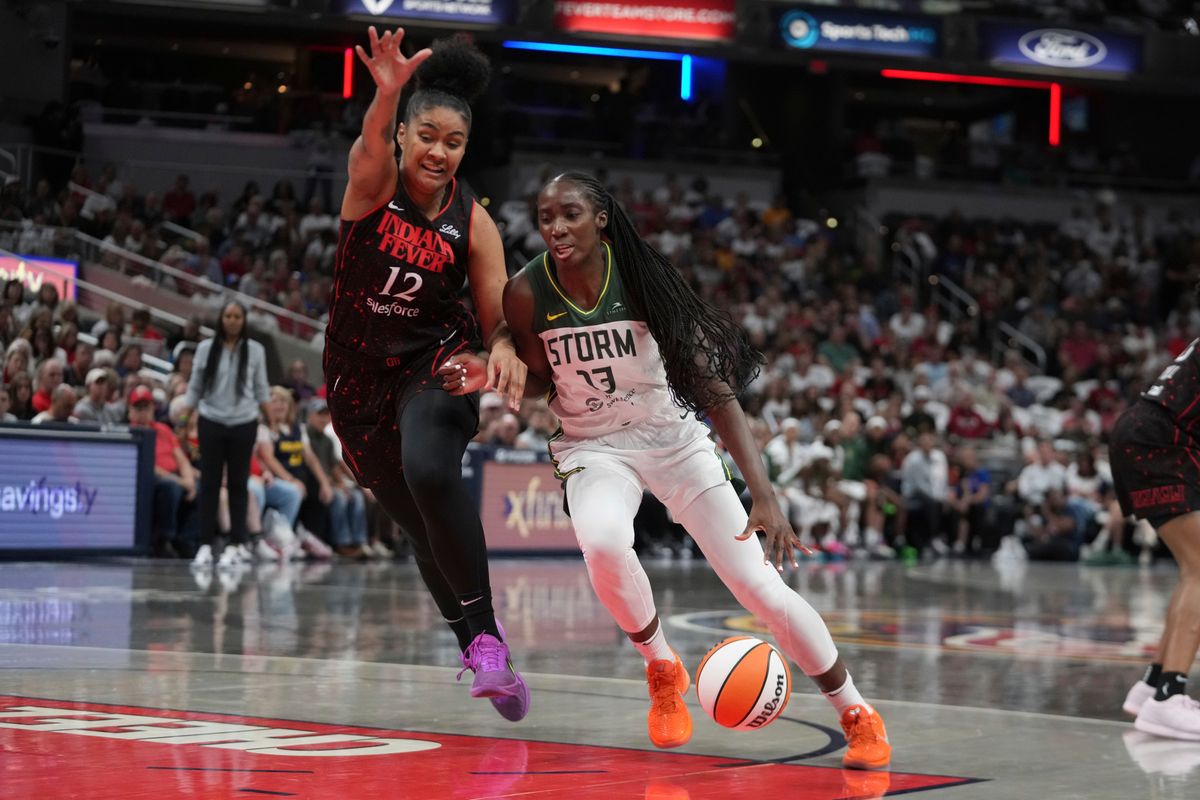 Indiana (20-18) moved past Seattle (20-19) and Golden State (19-18) for sixth in the WNBA standings, with six games remaining in the regular season. The top eight teams make the playoffs.
