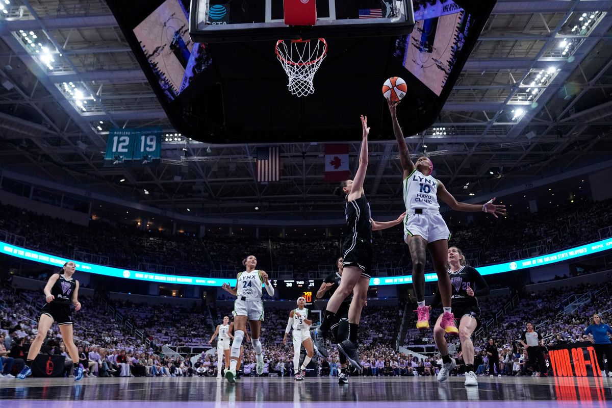 Carrington banked in a 3-pointer with 8:30 left that got the Lynx within 63-56 and McBride’s jumper made it a five-point game at the 7:19 mark before Golden State called timeout. The Valkyries immediately committed a shot-clock violation and McBride scored again.