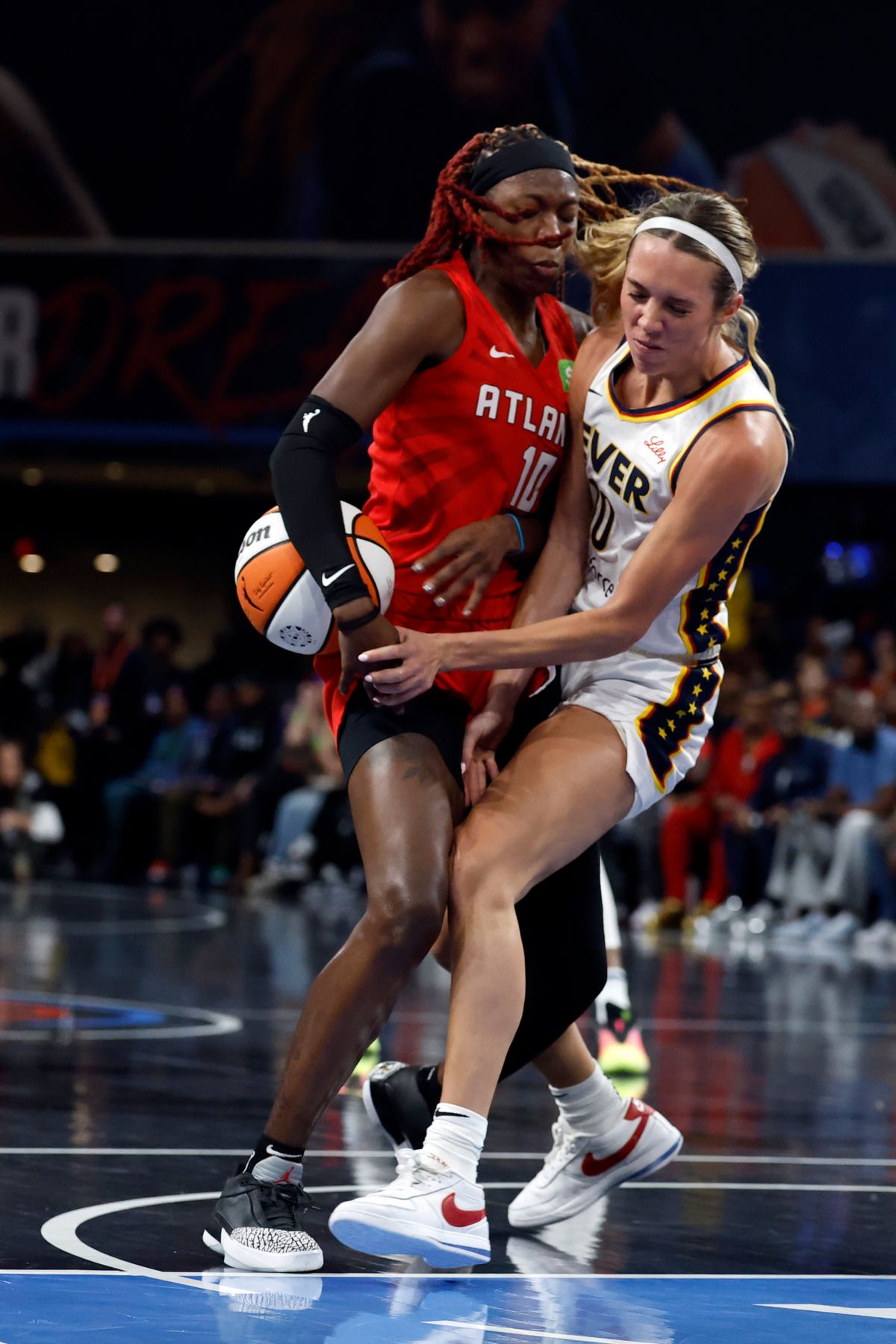 Rhyne Howard twice had trouble inbounding the ball in the final seconds, with Hull coming from behind to poke it away from Jones. Indiana got it to Odyssey Sims, who went 1 of 2 at the free-throw line to give Atlanta another shot with 1.2 left. Jones’ off-balance 3-pointer at the buzzer was off the mark.