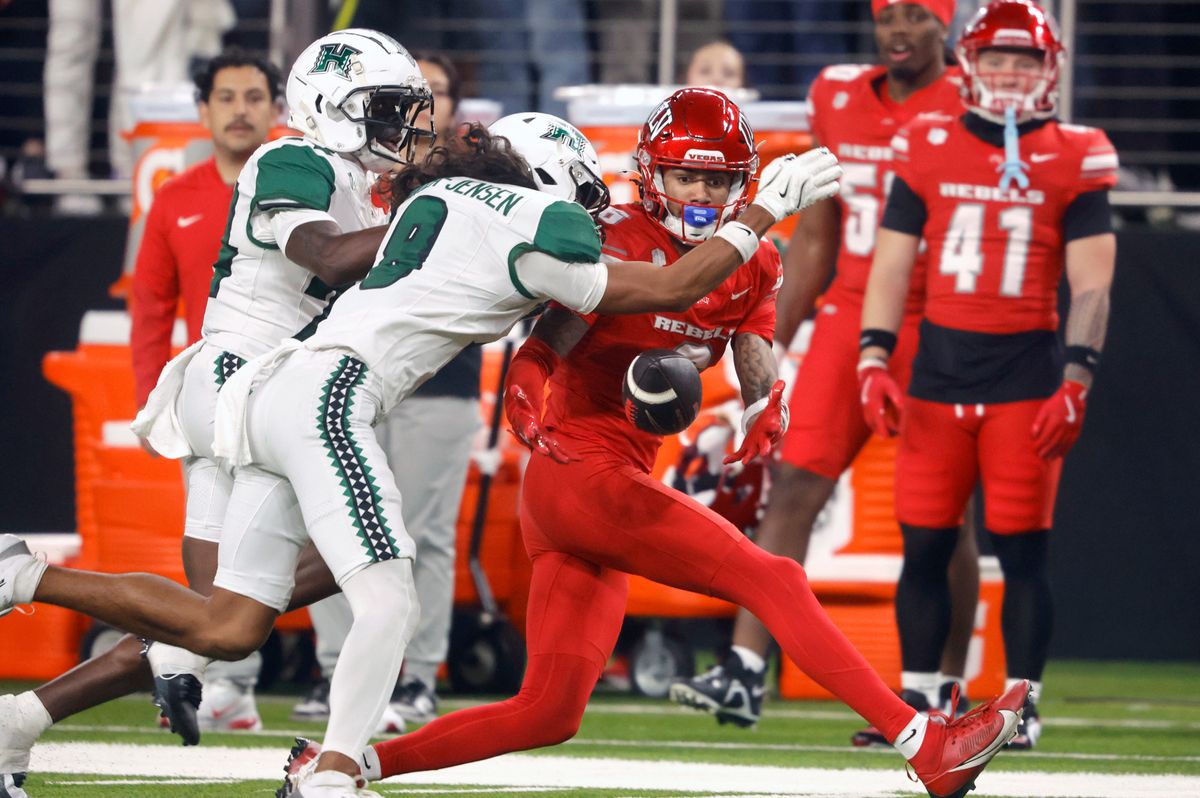 UNLV (9-2, 5-2 Mountain West Conference) turned the game-opening drive into a 44-yard field goal by Ramon Villela, but Hawaii (7-4, 4-3) answered with Micah Alejado’s 70-yard scoring strike to Jackson Harris on the Rainbow Warriors’ third play from scrimmage.