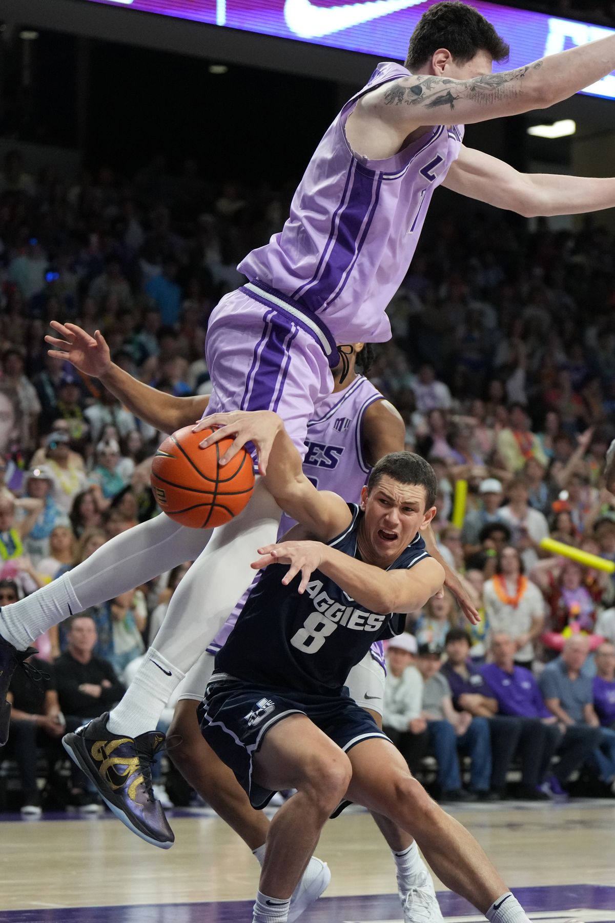 Utah State turned up its defensive pressure to claw back, pulling within one on Kolby King’s long 3-pointer, but missed six of their next seven shots as Grand Canyon stretched the lead to 10.