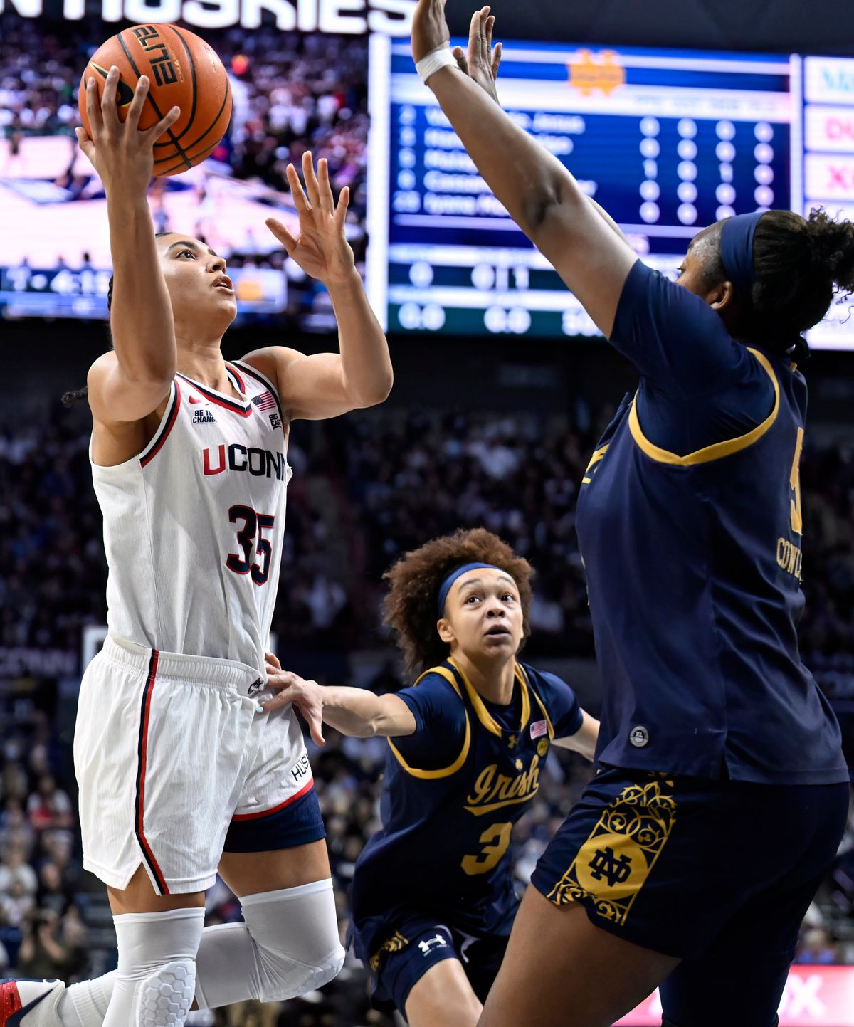 KK Arnold had 12 points, five assists, two steals and one turnover while drawing the defensive assignment on Notre Dame star Hannah Hidalgo. Azzi Fudd added 15 points and Ashlynn Shade finished with 10 points and four assists as UConn won its 35th consecutive game and posted its largest margin of victory against the Fighting Irish.