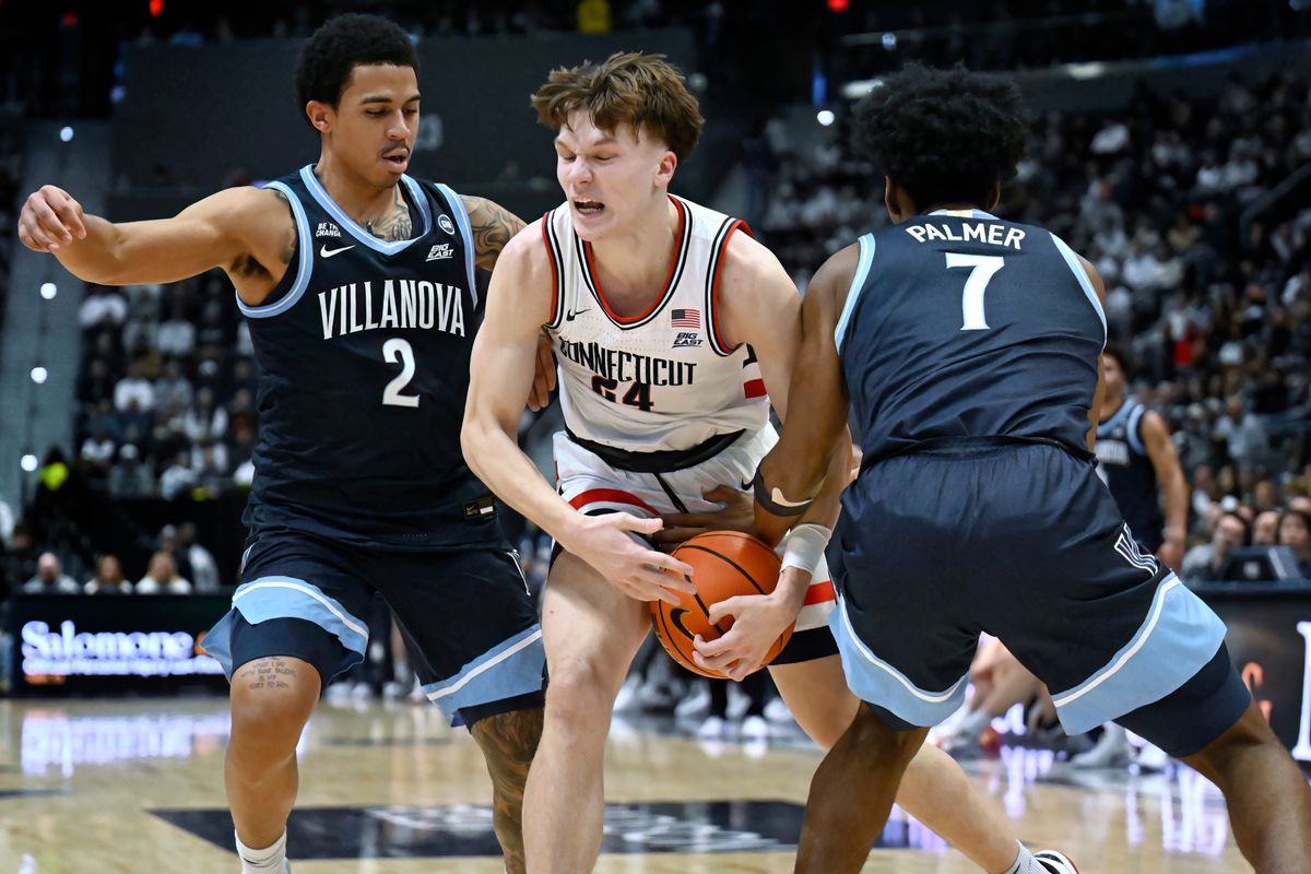 UConn coach Dan Hurley was called for a technical foul with 15:06 left in the second half after no foul was called on a shot in the paint by Karaban and then Villanova’s Acaden Lewis went to the line after being fouled. Devin Askew made both free throws on the technical and Lewis hit both foul shots to put Villanova up 39-33. Ball had five points in a 7-0 UConn run and his 3-pointer with 12:12 remaining gave the Huskies their first lead of the second half.