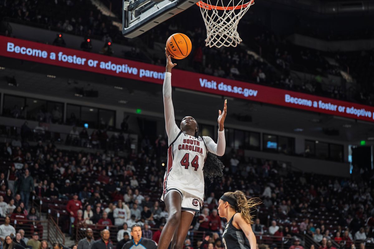 South Carolina went on an 11-2 burst less than two minutes in and gradually built the lead to 21 points in the second quarter. The Gamecocks defense did much of the damage, forcing 16 first-half turnovers against a Vanderbilt team averaging 12.5 per game this season.