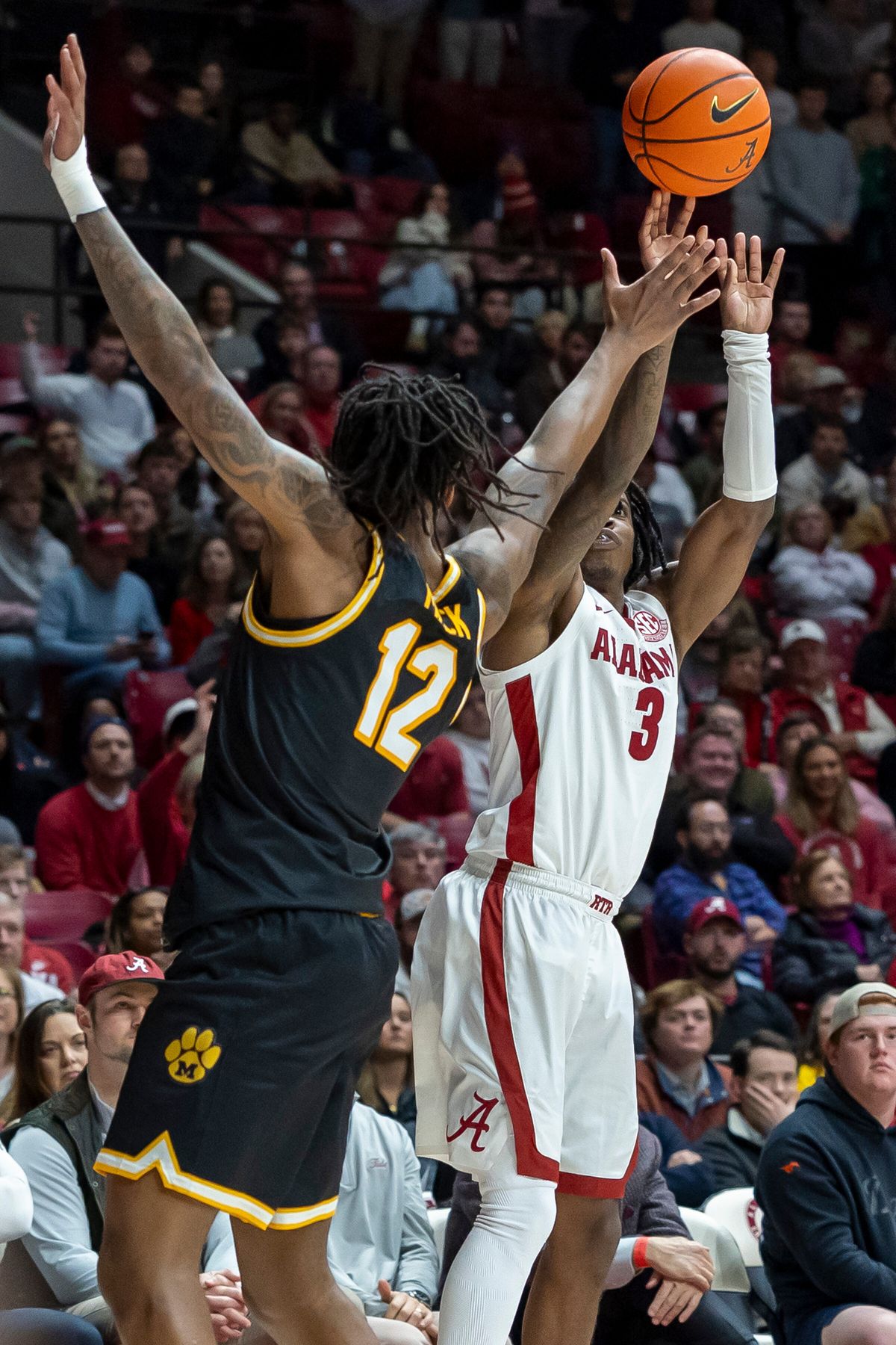 After its lowest-scoring output of the season last Saturday against Tennessee, Alabama responded with an efficient offensive showing. The Crimson Tide knocked down 15 shots from 3-point range, shot 88% at the free-throw line, well above its season average of 74%, and recorded 19 assists after a season-low nine last Saturday.