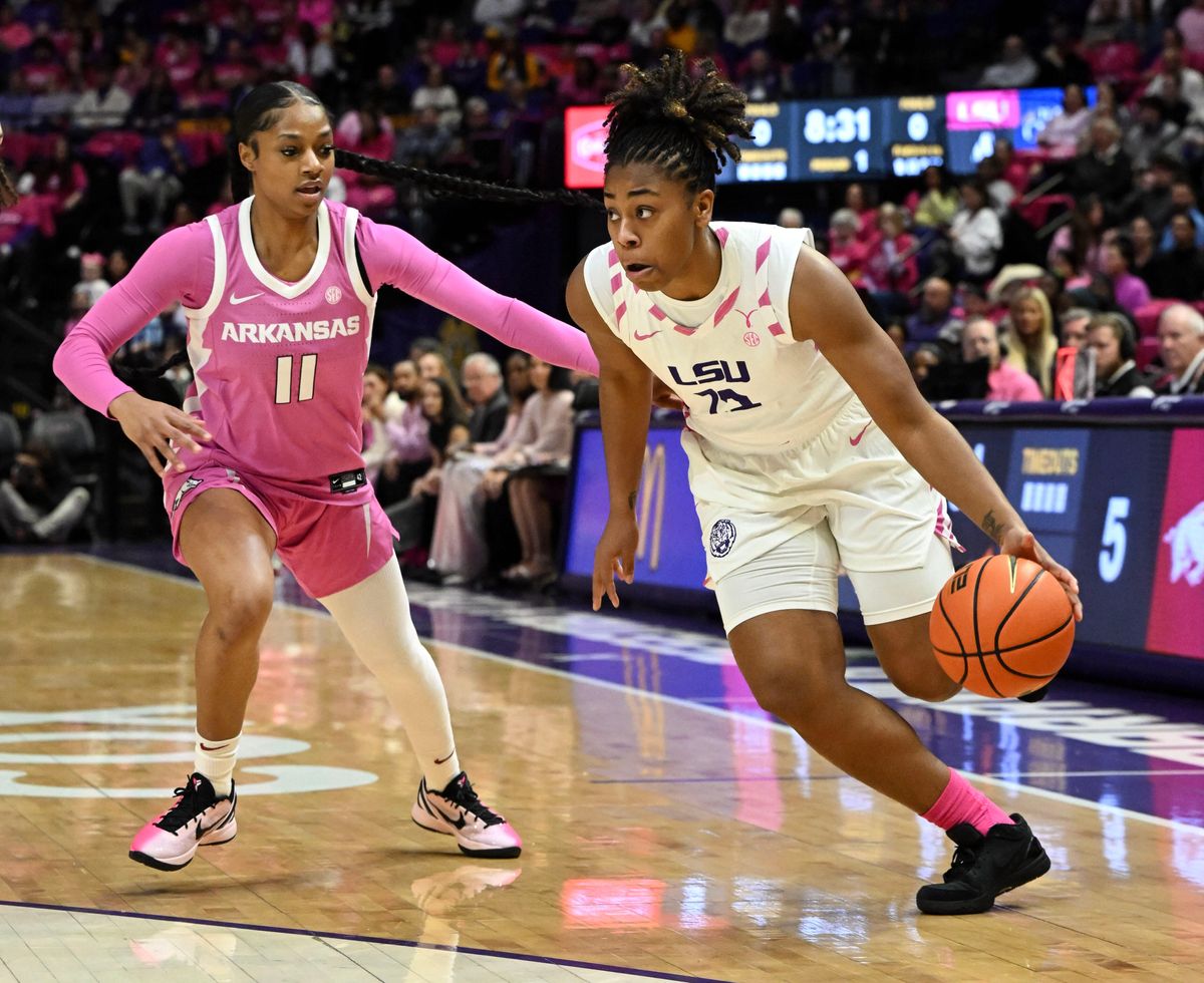 No. 6 LSU women pull away after slow start to beat Arkansas 92-70