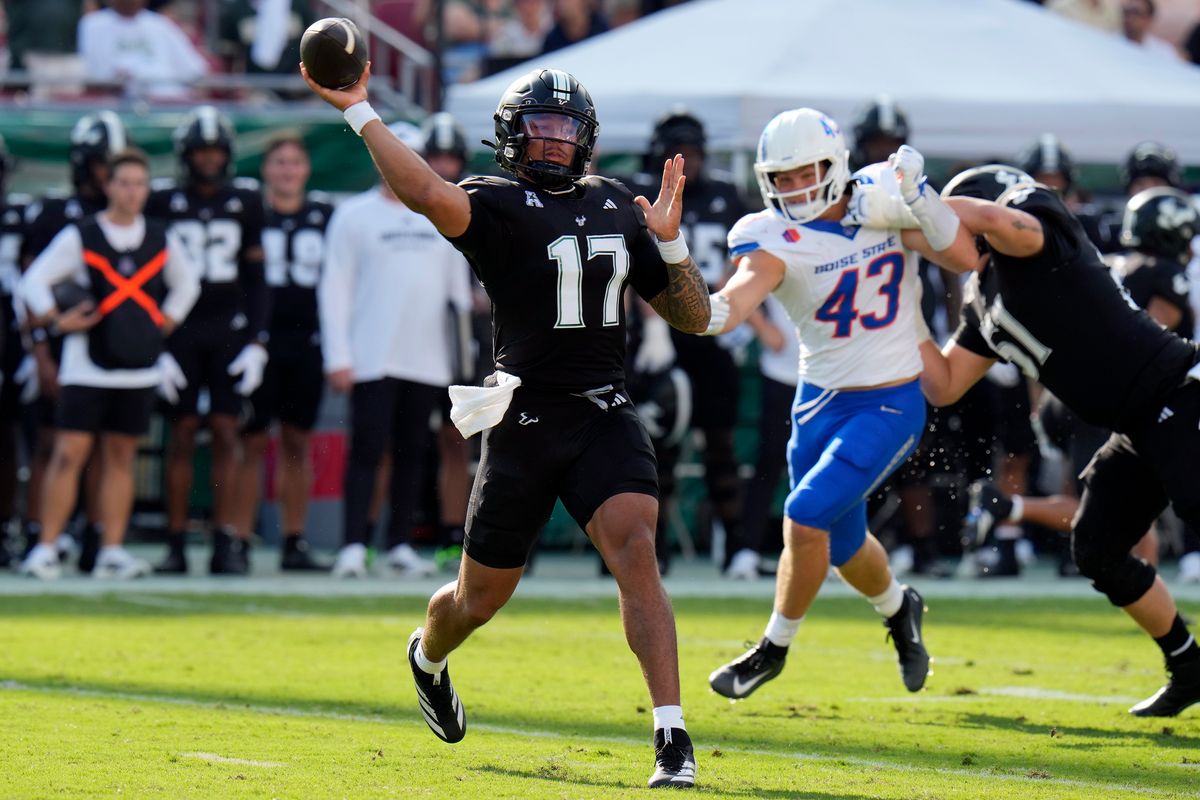 TAMPA, Fla. (AP) — Quarterback Byrum Brown ran for two touchdowns, Keshaun Singleton caught a 45-yard touchdown pass on a fake punt and South Florida routed No. 25 Boise State 34-7 on Thursday night in the opener for both teams.