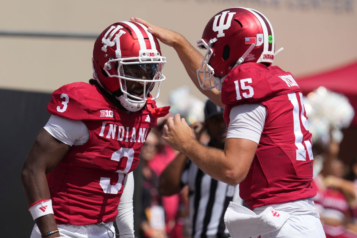 Following a fumble recovery, Indiana wide receiver Omar Cooper Jr. scored on a 75-yard run on an end-around on the next play. Cooper had a key 40-yard catch on the Hoosiers’ first TD drive.