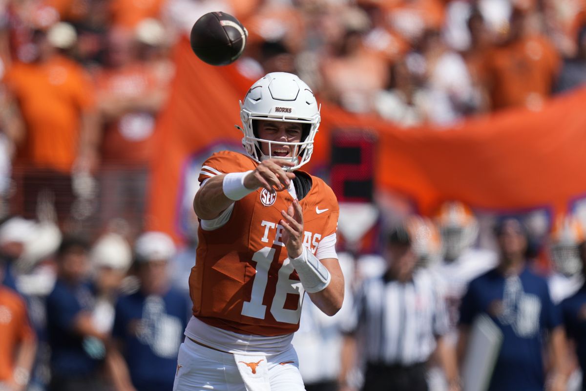 “I felt like he pressed some. He knew he missed some throws,” Texas coach Steve Sarkisian said. “I feel like we’ve done enough with him to have a pretty good understanding of who he is as a player and what he’s capable of. I know there’s a lot of football in him that’s high level football.”