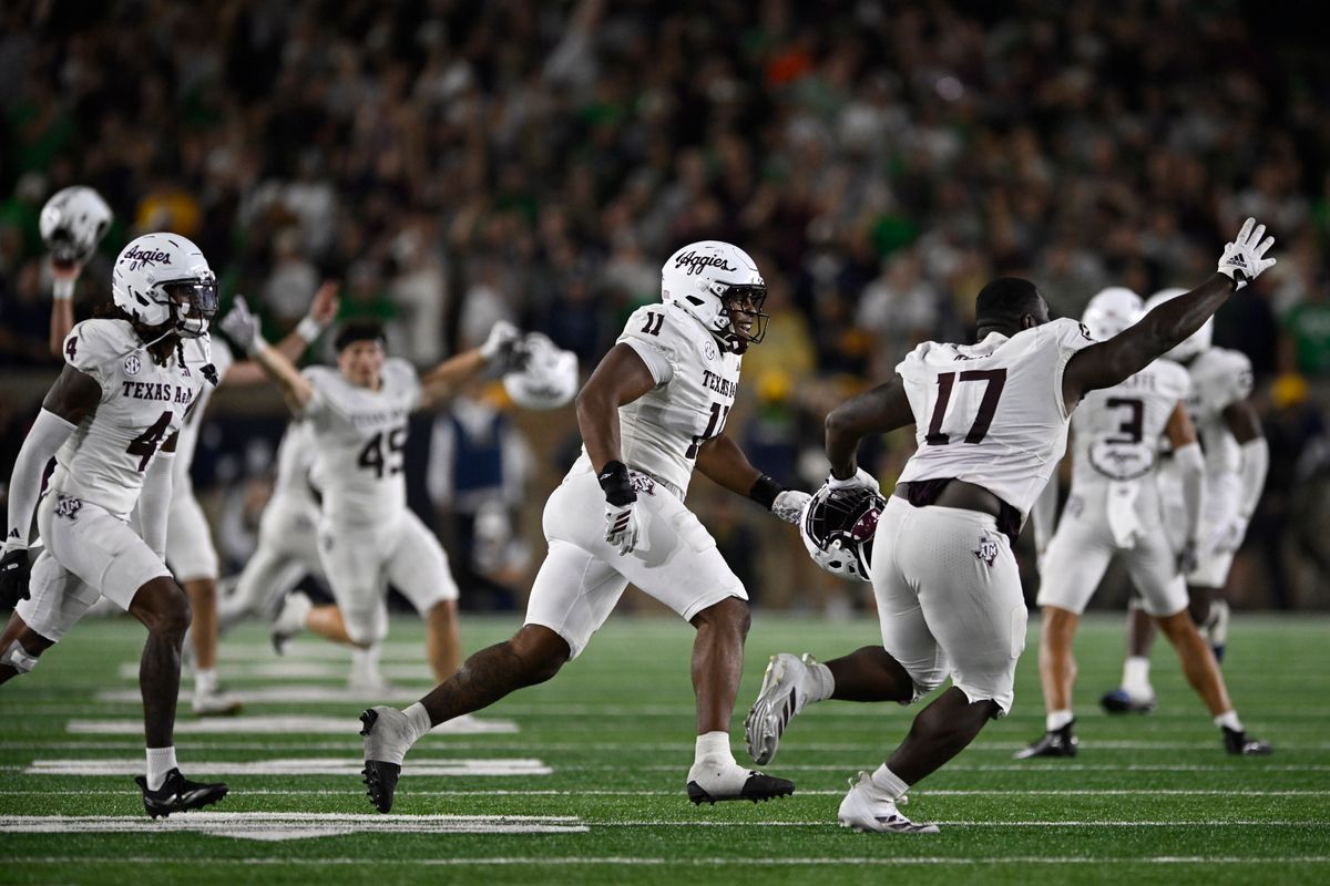 “I don’t know that anything went to script in terms of how you want to go about winning a game on the road,” said Texas A&M coach Mike Elko, a former Notre Dame assistant coach. “We just kept fighting, kept battling, kept scrapping. Ultimately, we made one more play than they did.”