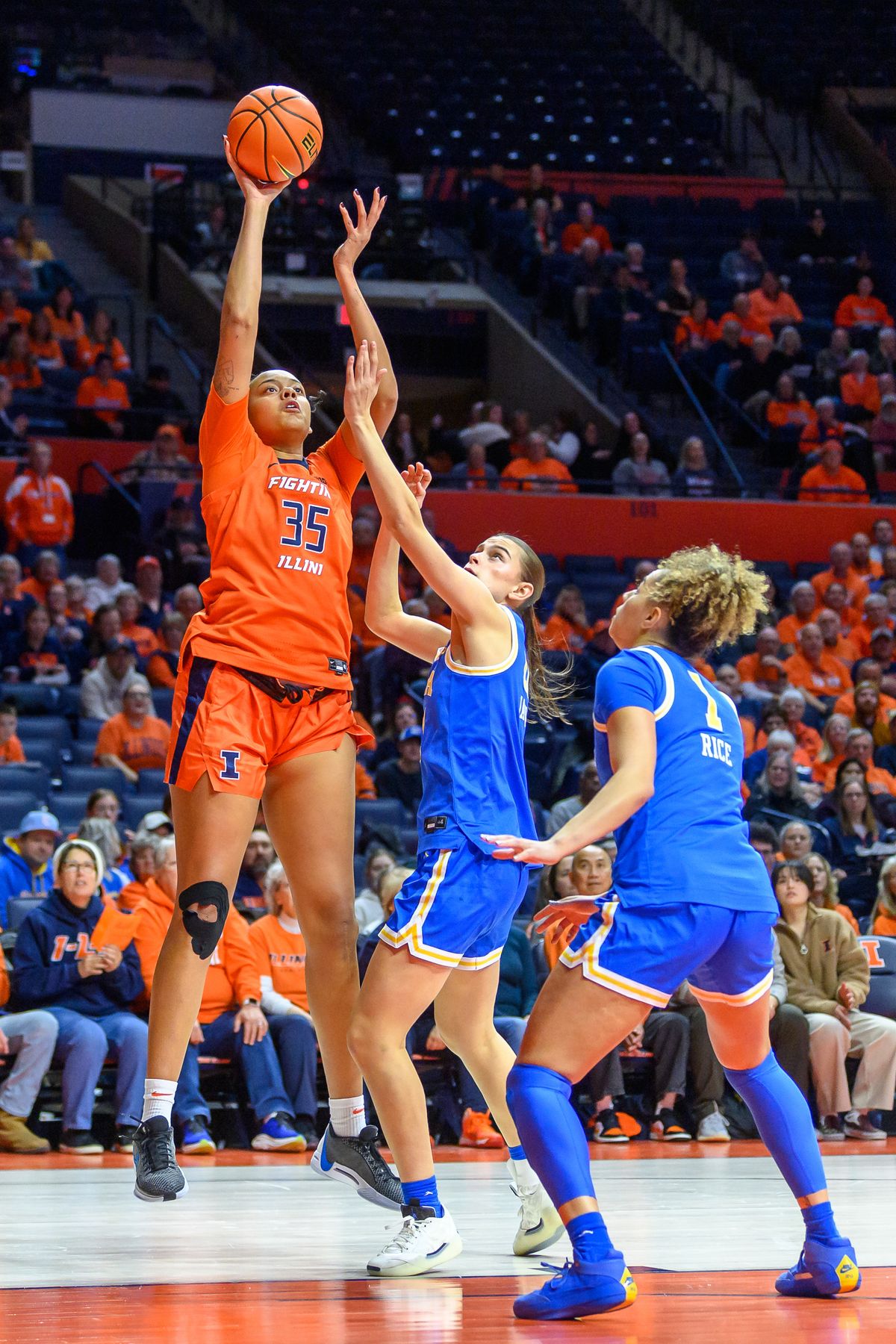 The Bruins won despite making just one 3-pointer, going 1 of 10 from distance. They had 48 points in the paint to Illinois’ 24 and also doubled the Illini in bench points, 24-12.