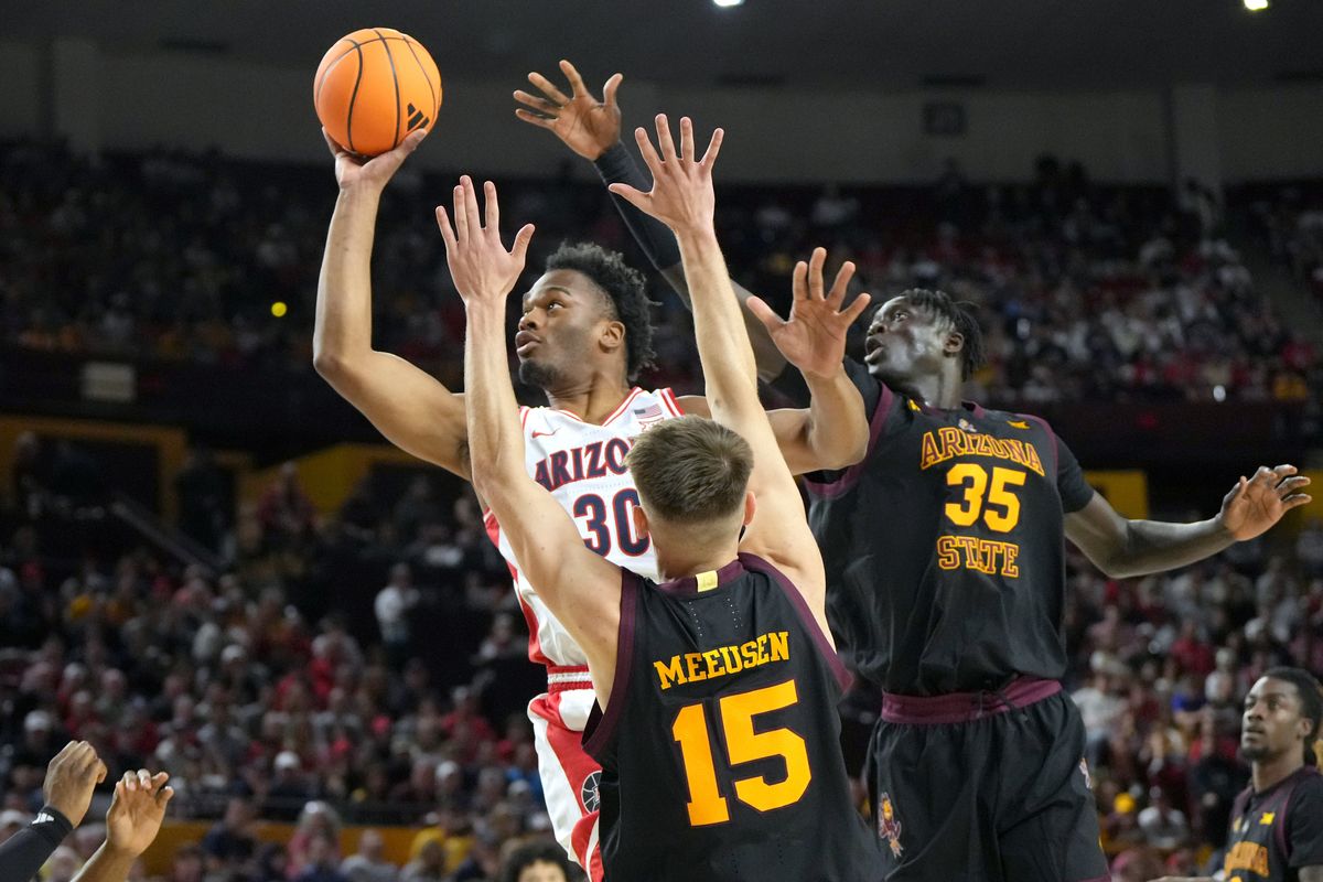 Arizona State led for much of the first few minutes but the Wildcats used a 13-2 run to take a 25-18 lead with 7:00 left in the first half. Peat made a layup to cap the run, finishing through contact that left him bloodied around his left eye.