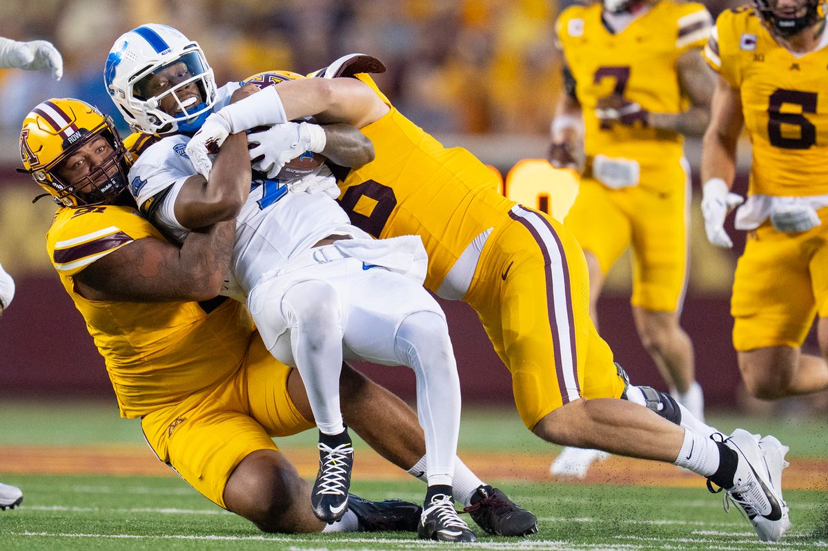Minnesota: The Gophers soft-launched their two-way deployment of sophomore safety Koi Perich, who took a handful of snaps on offense and caught Lindsey’s first pass for 12 yards. Perich, a second-team preseason AP All-America pick, had two tackles on defense and four fair catches on punts with one 18-yard return.