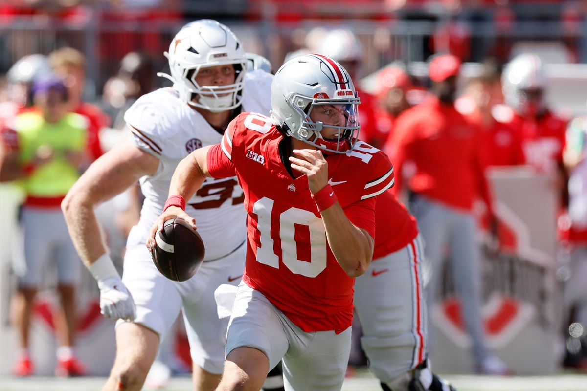 He played through multiple dropped passes early in the Texas game and delivered a 7-yard pass to Jeremiah Smith to convert a third-and-4 early in what would end up being Ohio State’s second scoring drive of the afternoon against the Longhorns.