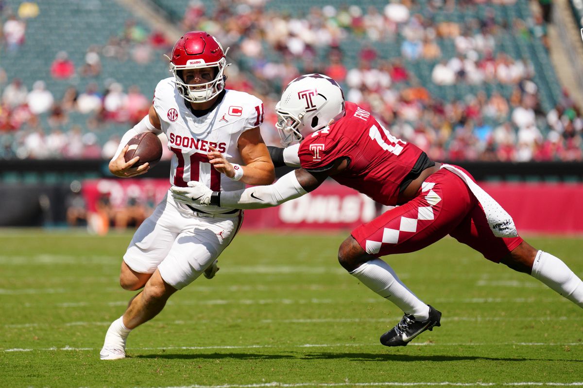 So it went from there. Blaylock added TD runs of 6 and 18 yards in the second quarter for the Sooners and the expected rout — they were a 24-point favorite, per BetMGM Sportsbook — was on. OU also beat Temple 51-3 in 2024.