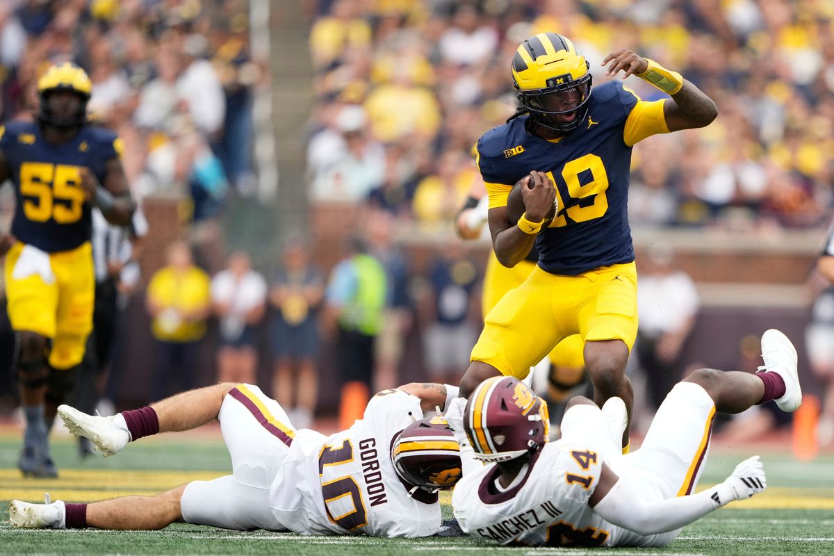 Michigan: Jaishawn Barham is becoming a force, sacking the Chippewas twice and making four tackles in the first quarter. The linebacker finished with six tackles.