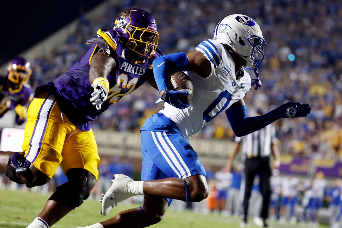 BYU was leading 6-3 when the Pirates drove to the Cougars’ 6 and Johnson stepped in front of a pass at the goal line to end the threat. East Carolina started its next possession at its 1 after a muffed punt, and Johnson picked off Houser’s pass at the 4 on the next play and ran into the end zone to make it 13-3 at half.
