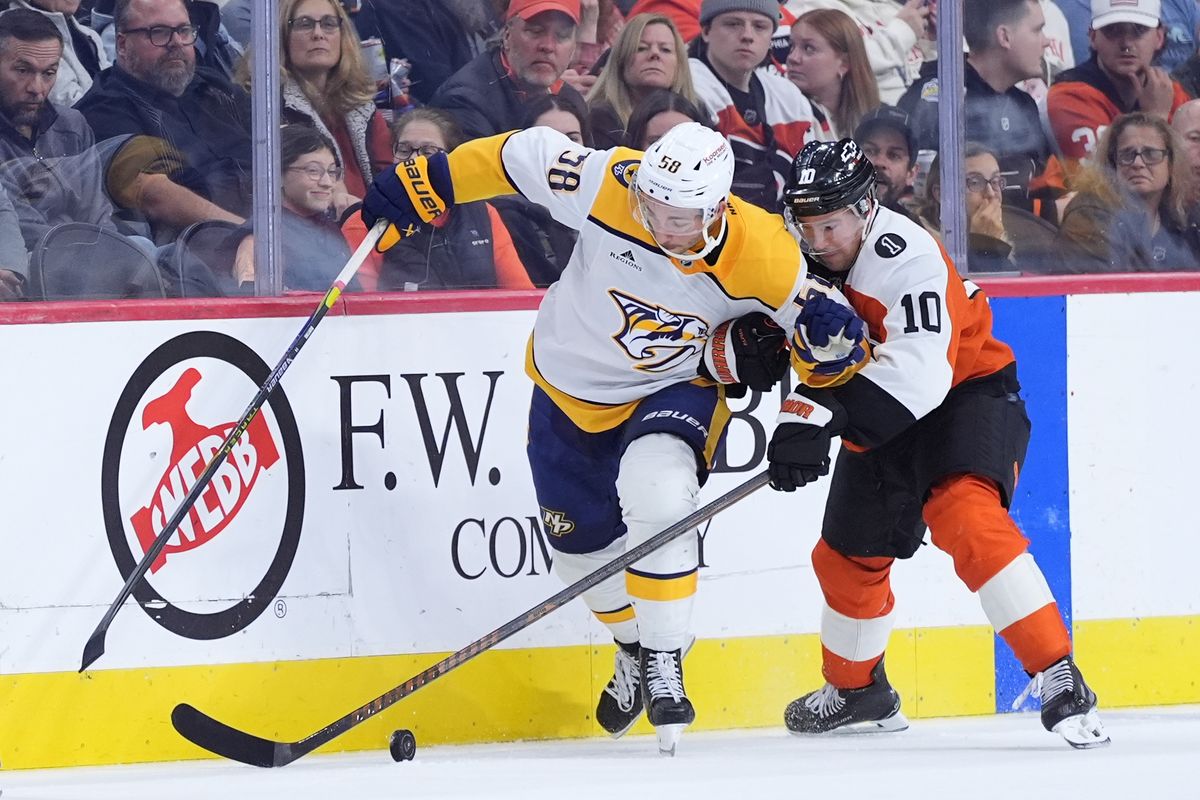 PHILADELPHIA (AP) — Trevor Zegras scored twice and added an assist to continue his home ice hot streak and the Philadelphia Flyers beat the Nashville Predators 4-1 on Thursday night.