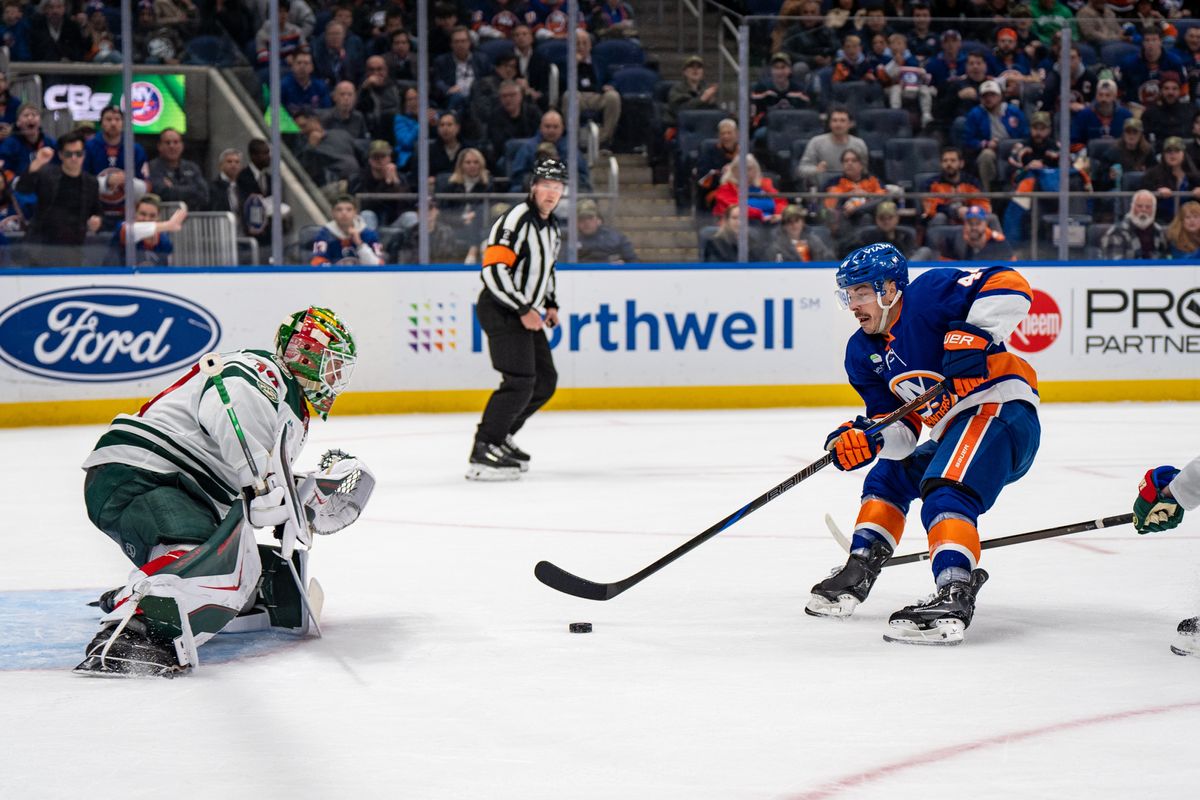 Trailing 2-0 after 20 minutes, the Islanders got on the board at 4:38 of the second as Heineman got a pass from Bo Horvat in the right circle and beat Wallstedt for his sixth.