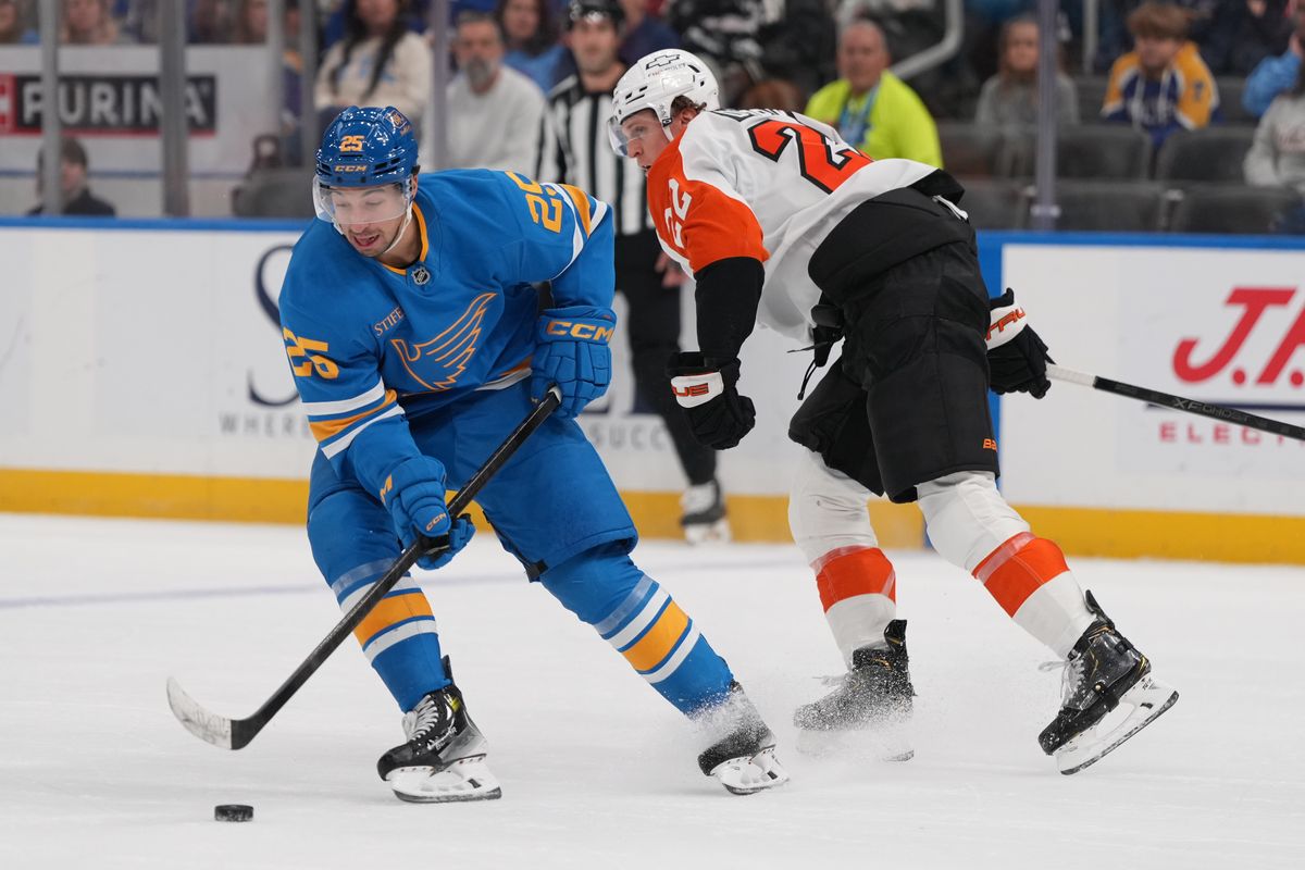 The Flyers outshot the Blues 5-1 in the scoreless overtime.
