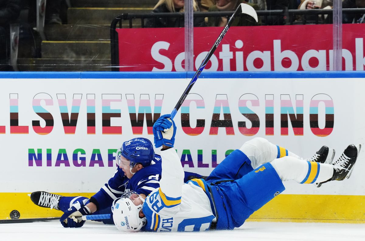 The Leafs were playing without seven regulars, including forwards Auston Matthews, Scott Laughton and Nicolas Roy. Brandon Carlo has joined fellow defenseman Chris Tanev on the sidelines, while goaltender Anthony Stolarz also remained out. Matthew Knies was scratched about an hour before puck drop with a lower-body injury.