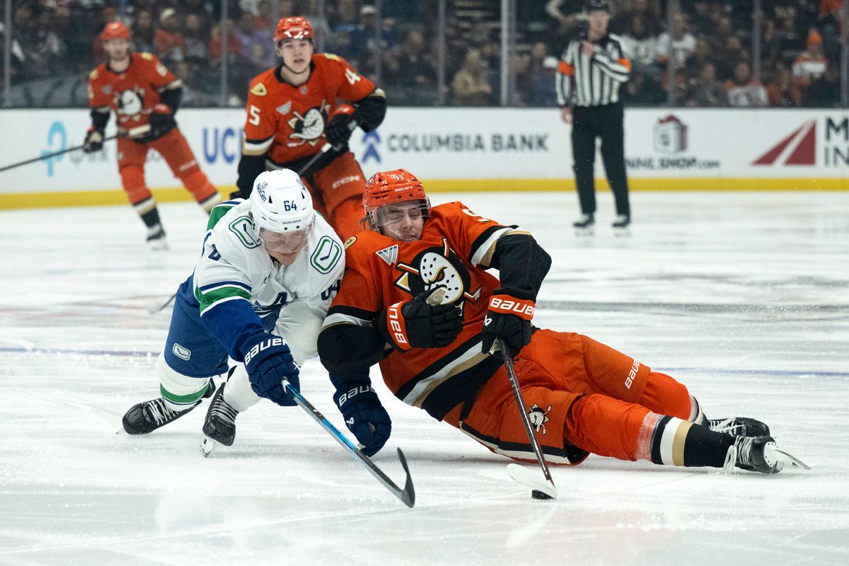 Sasson gave Vancouver the lead with 4:02 remaining on a tip, and O’Connor followed with 1:52 to go on a wrist shot. Cutter Gauthier got one back for the Ducks with seven seconds left, his 14th of the season.