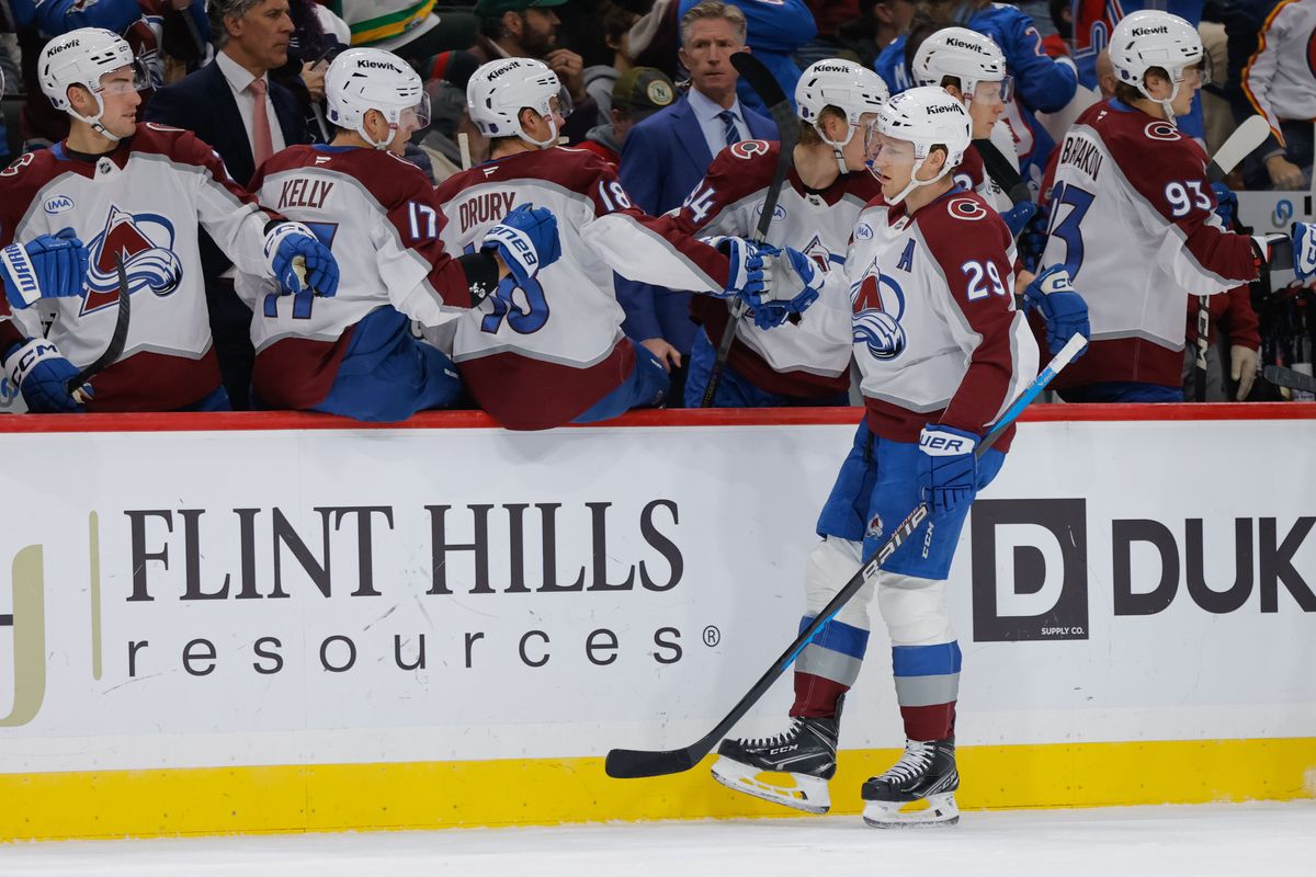 MacKinnon became the first NHL player to reach 40 points this season with his first-period goal. Alone in the crease, MacKinnon was the beneficiary of Artturi Lehkonen forcing a blind pass by Kaprizov from the wall.
