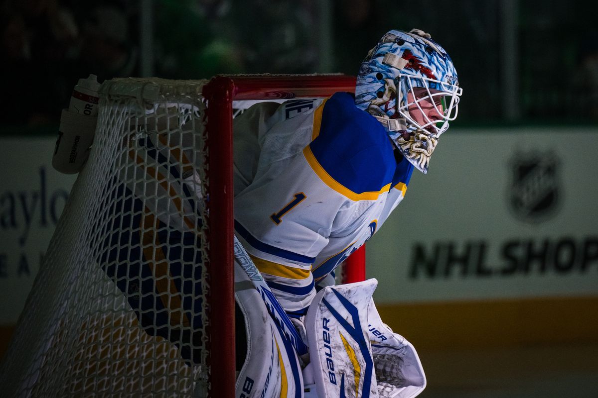 Sabres goalie Alex Lyon, who has earned seven wins during the streak, returned to Buffalo for further evaluation after suffering a lower-body injury late in Monday’s win at St. Louis.