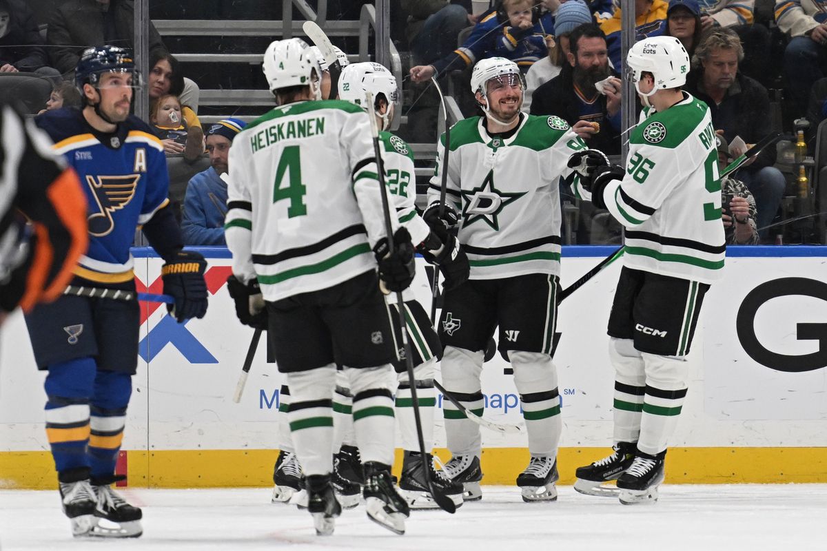 Matt Duchene scored a pair of goals for his first multigoal game since Feb. 8. Roope Hintz also scored and Jake Oettinger made 23 saves, as the Stars won for the third time in their last four games and improved to 10-2-1 against St. Louis going back to Nov. 28, 2022.