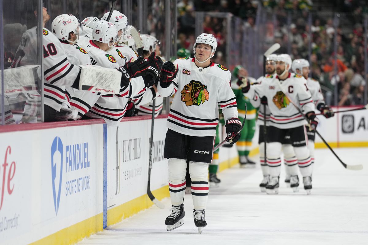 Minnesota cut the Chicago lead to 3-2 early in the third when Quinn Hughes fired a shot that hit Marcus Johansson’s skate and deflected to Erikson Ek, who got his stick down in time to tap it into the net.