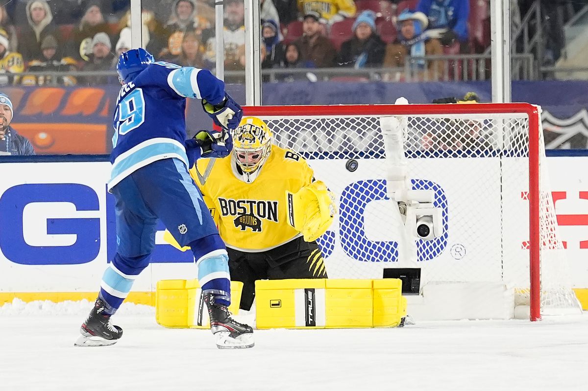 The game featured the first goalie fight in outdoor game history when Vasilevskiy and Swayman exchanged blows at center ice in the second period. The Lightning pointed to the goalie fight as a spark to their comeback when they were down 5-2.