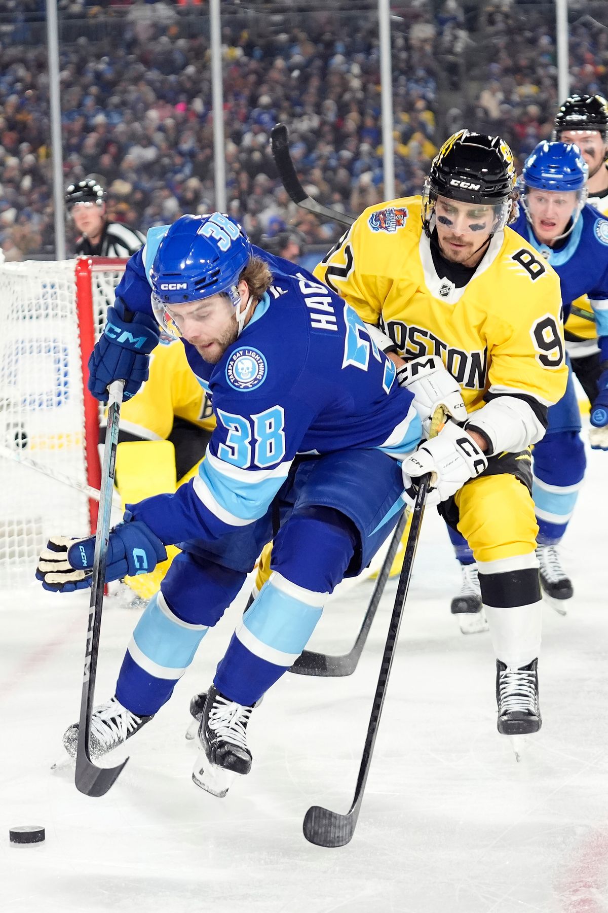With an opening puck drop temperature of 41.8 degrees Fahrenheit (5.44 Celsius), Hagel fired up the crowd with a goal just 11 seconds in — the fastest goal in NHL outdoor game history and tying a franchise history for fastest goal to start a game.