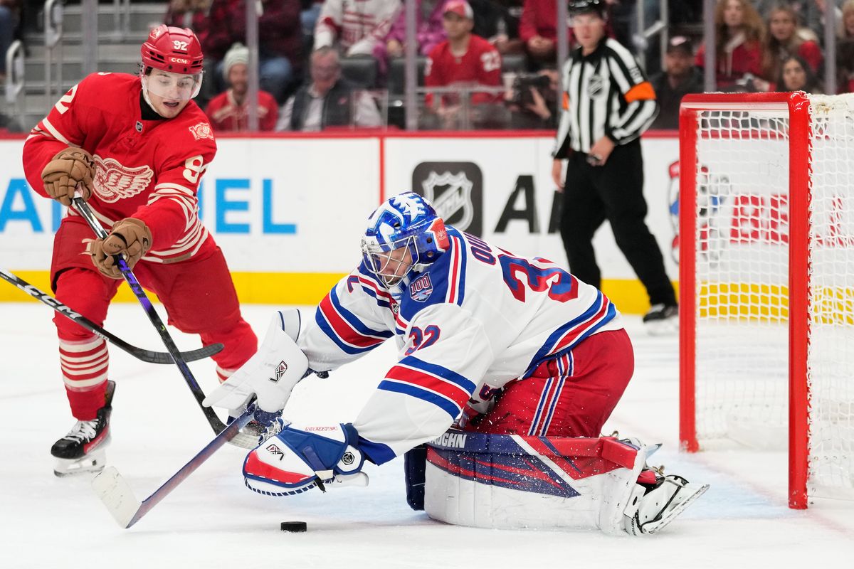 Panarin extended the lead at 7:29 of the third, beating Talbot on his glove side. Lafreniere got behind Detroit’s defense and scored less than a minute later to give the Rangers a three-goal lead.