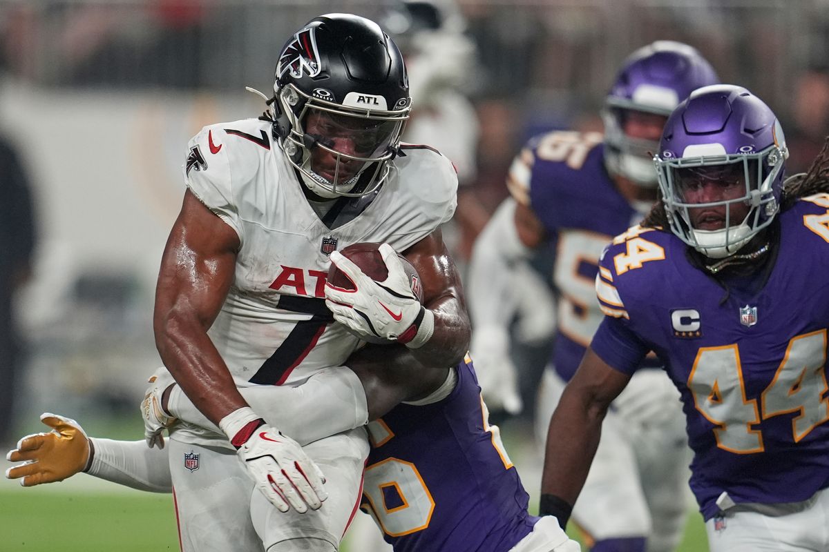 Tyler Allgeier added 13 carries for 67 yards with a late touchdown run against a Vikings defense that admirably kept the game close all night while the offense crossed midfield just three times and only once got inside the 20.