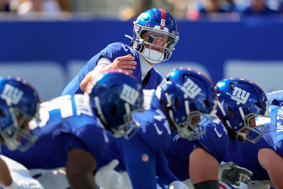 Dart started after Daboll — who many fans have called to be fired after the team’s winless start — made the decision this week to play him in place of Russell Wilson. And the rookie made an immediate impact, running for a 15-yard score to cap his first drive as a starting quarterback. He also threw a 3-yard touchdown pass to Theo Johnson.