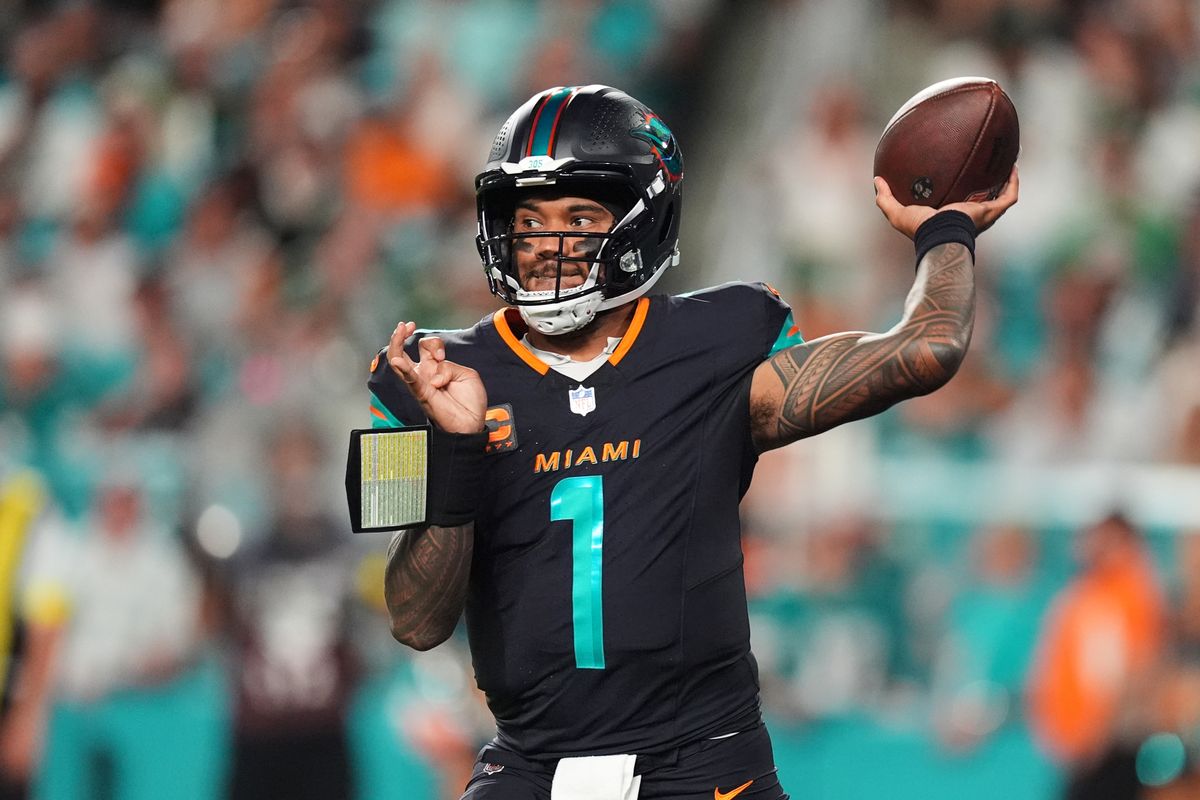 Tagovailoa completed 17 of 25 passes and didn’t have a turnover for the first time this season as he moved to 7-0 against the Jets as Miami’s starter. The Dolphins (1-3) won their 10th straight at home against the Jets (0-4), who are still searching for their first win under coach Aaron Glenn.