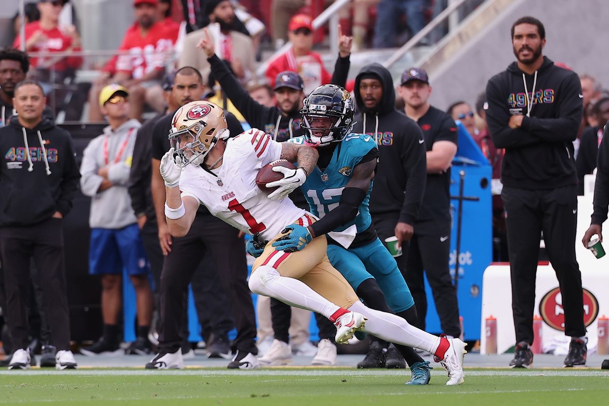Purdy struggled at time against the Jaguars, missing several throws high. He went 22 for 38 for 309 yards and two touchdowns but also had two interceptions and lost a fumble on a potential game-winning drive late in the fourth quarter. Purdy said he wasn’t sure what impact the injury had on his performance.