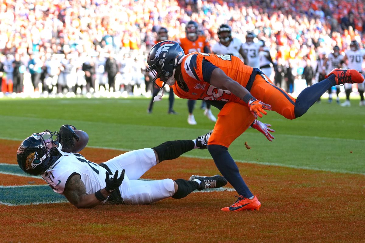 Lawrence was sacked five times by the league’s best pass rush — the Broncos have a franchise record-tying 63 sacks on the season — but he still threw for 279 yards with three TDs and no interceptions. Jacksonville was 4 of 5 in the red zone against the league’s best red-zone defense.