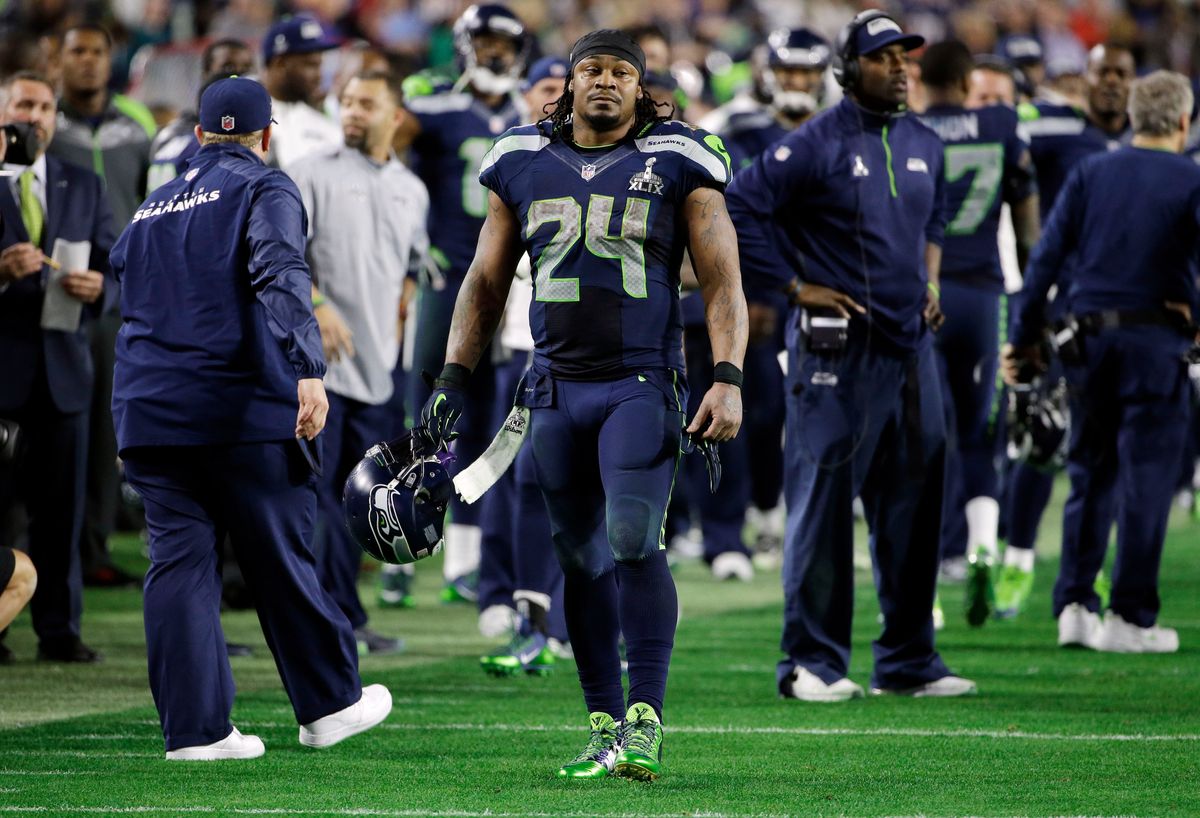 Lynch had just bulled his way to the 1 after Jermaine Kearse’s juggling 33-yard catch bounced off his legs and into his arms while he was on the ground at the Patriots 5-yard line.