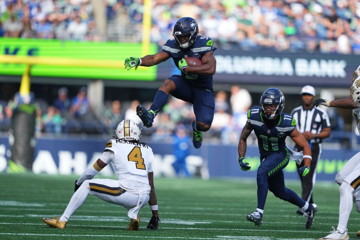 On a banner day for the Seahawks’ special teams, a blocked punt set up the first of two TDs by Kenneth Walker III, a 3-yard run that gave Seattle (2-1) a 21-0 advantage in the first quarter.