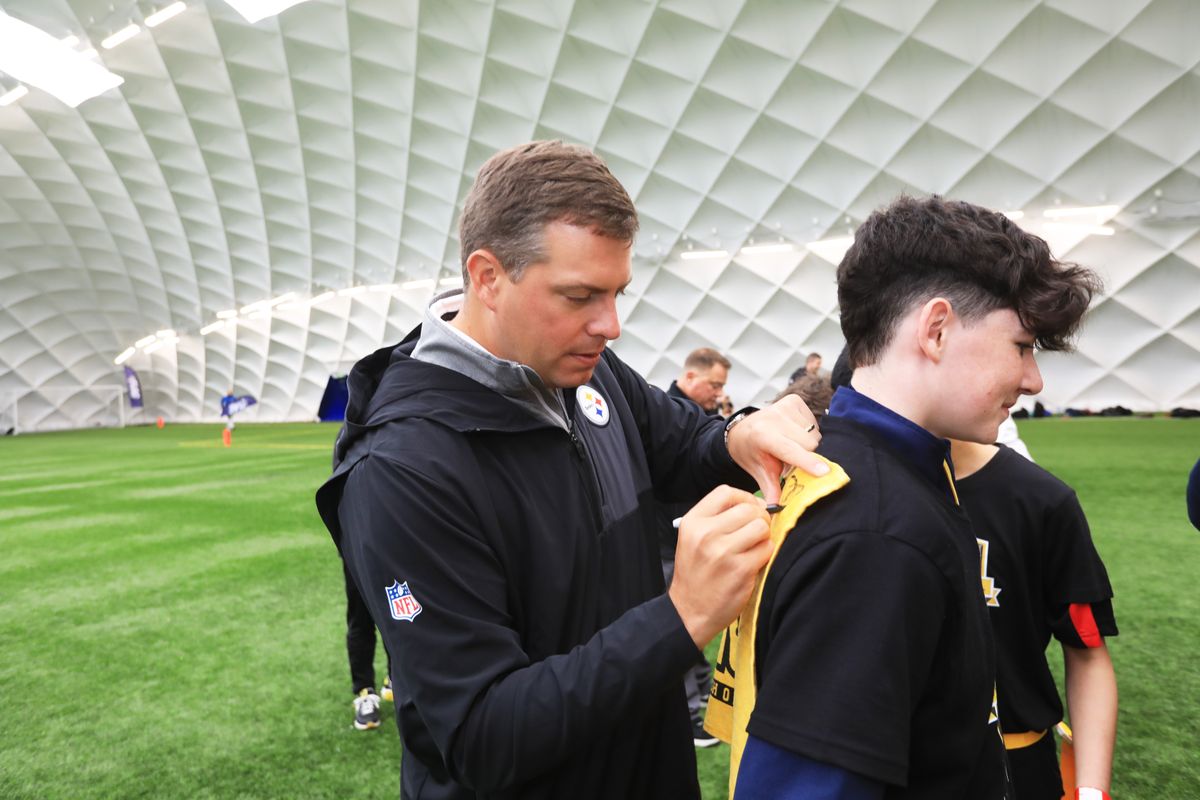 Earlier Thursday in Belfast, Steelers greats Jerome Bettis and Ike Taylor ran a flag football clinic.