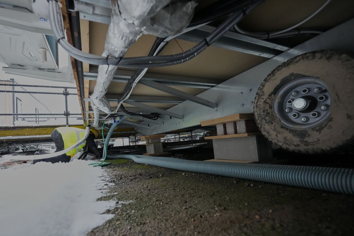 The bigger buildings — also temporary — for the cafeteria, gym and other common areas are already being heated by a thermal power plant running on natural gas that also warms the Village’s water supply. Air handling units placed on top of the buildings regulate the air.