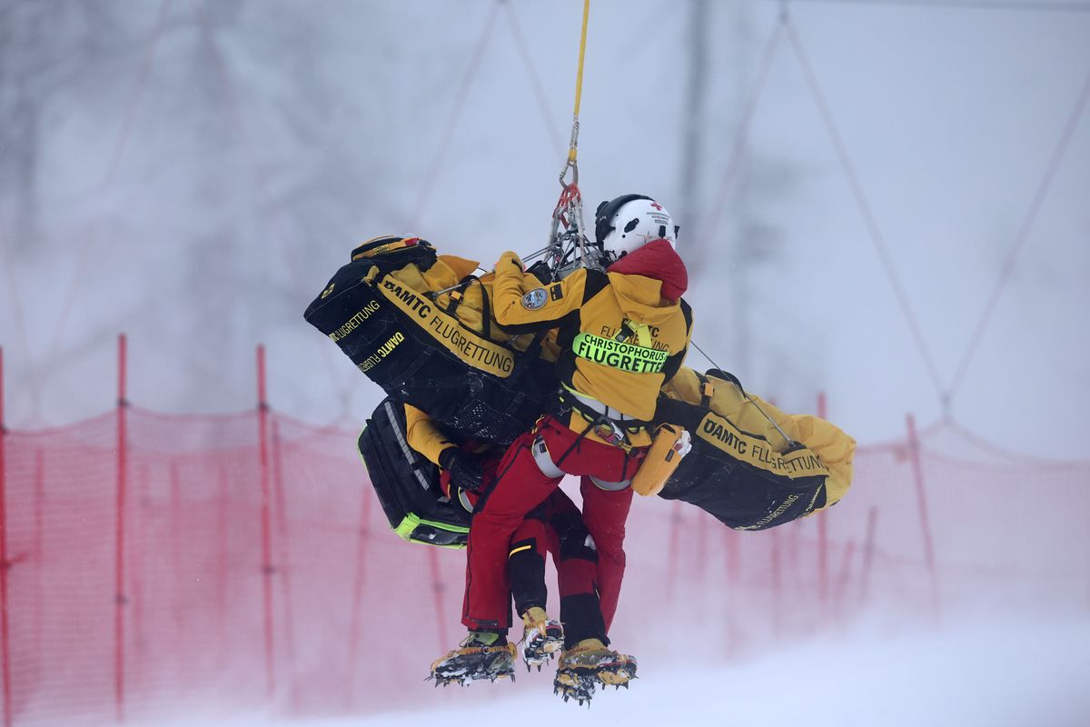 The race was delayed for 25 minutes while Austrian prospect Magdalena Egger was airlifted from the course after a season-ending fall and crash into the safety nets. She stood up with a bloodied nose, and later tests showed extensive damage to her right knee including a torn ACL, the Austrian ski federation said.