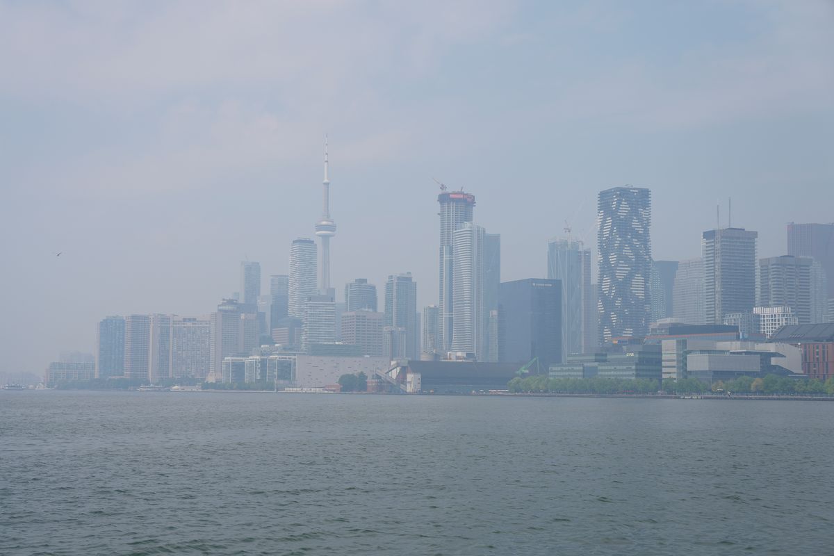 The Air Quality Health Index rating for Toronto was over 10, or “very high risk,” on Monday morning, dropping to a “high risk” rating of 8 by late afternoon.