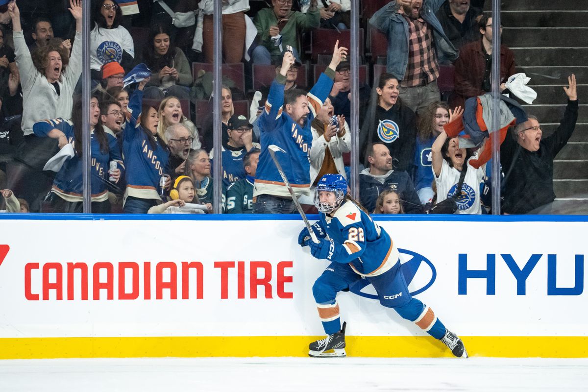 It was the initial game for the Professional Women’s Hockey League’s first two expansion teams in front of an enthusiastic sellout crowd of 14,958 at Pacific Coliseum.