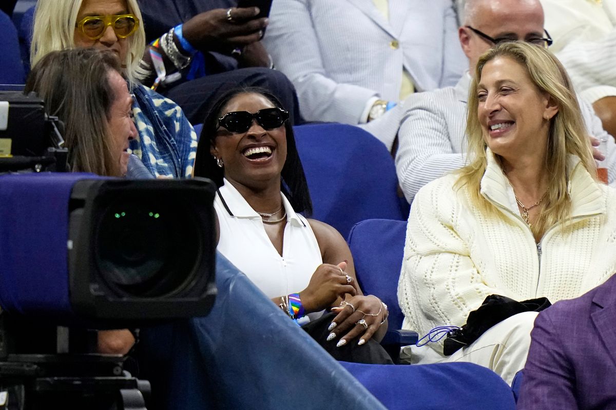 She gathered herself, and the second set went much more smoothly: just one double-fault, zero service breaks, in front of a crowd that included star gymnast Simone Biles.