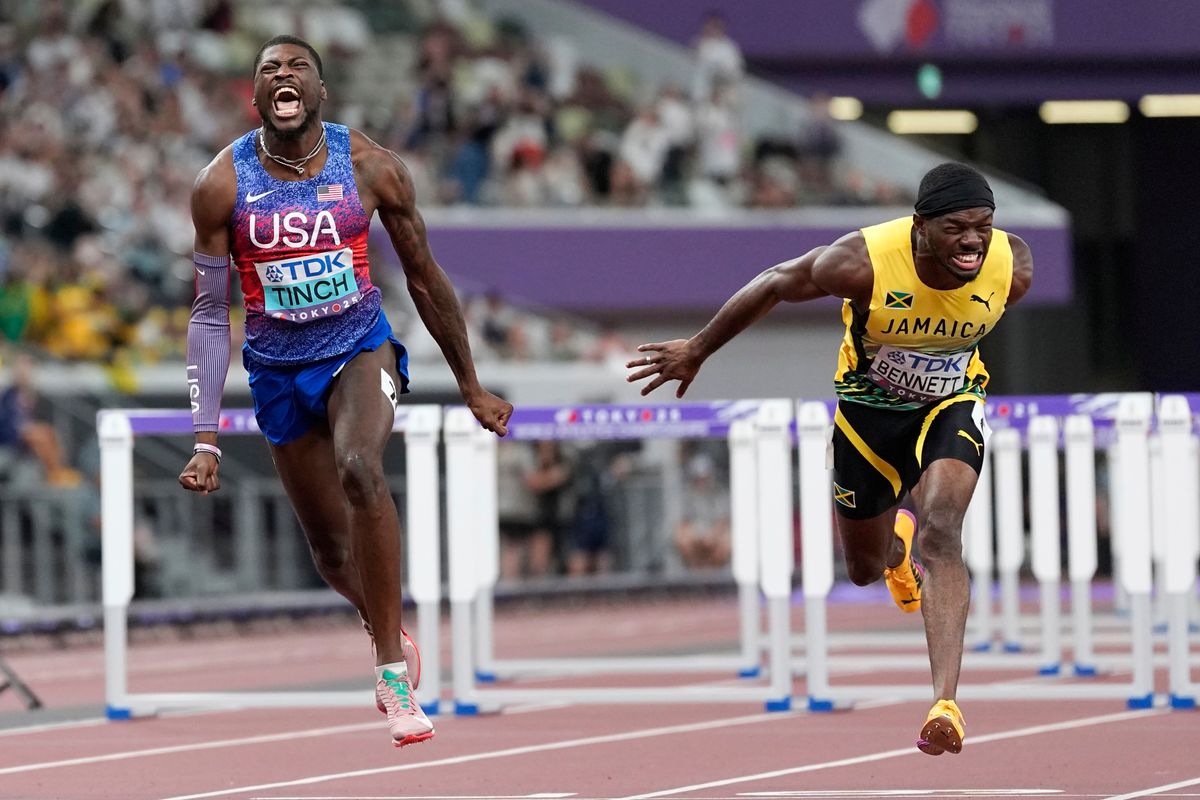 Cordell Tinch won the gold medal in the 110-meter hurdles, putting a temporary halt to a less-than-excellent start to the championships for the United States.